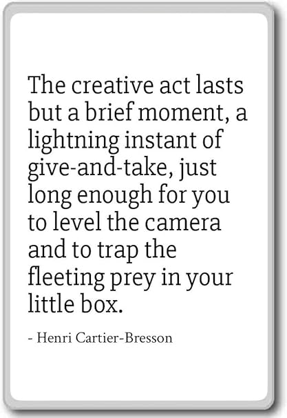 Henri Cartier Bresson Quote The Creative Act Lasts But A Brief Moment A Lightning Instant Of Give And Take Just Long Enough For You To Level The C from quotefancy.com Check spelling or type a new query. We did not find results for: Maybe you would like to learn more about one of these?